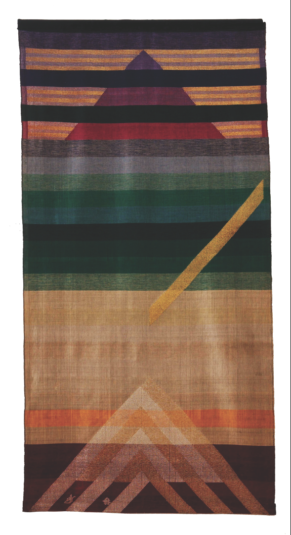 Tumpal, designed by Syed Ahmad Jamal (1929-2011) is derived from the fusion of craft (songket weave) by National Craft Laureate, Habibah Zikri (1948), and painting. It is a typical motif incorporated by many Malay-Islamic revivalist artists in the post National Culture Congress context of the seventies.