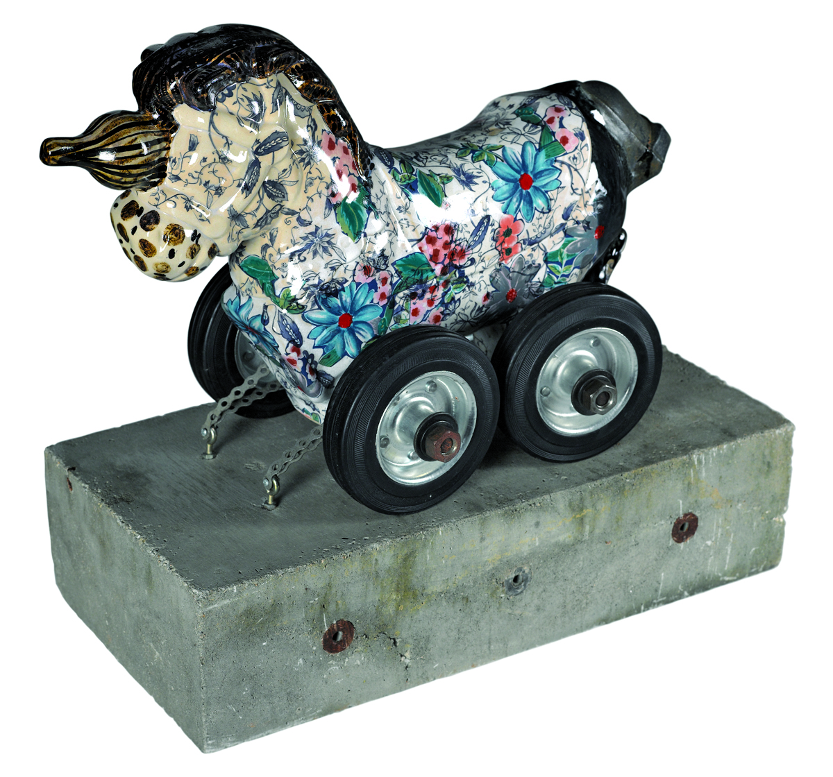 Mahir Ismail 2007. White stoneware crackle glaze decal and wheels