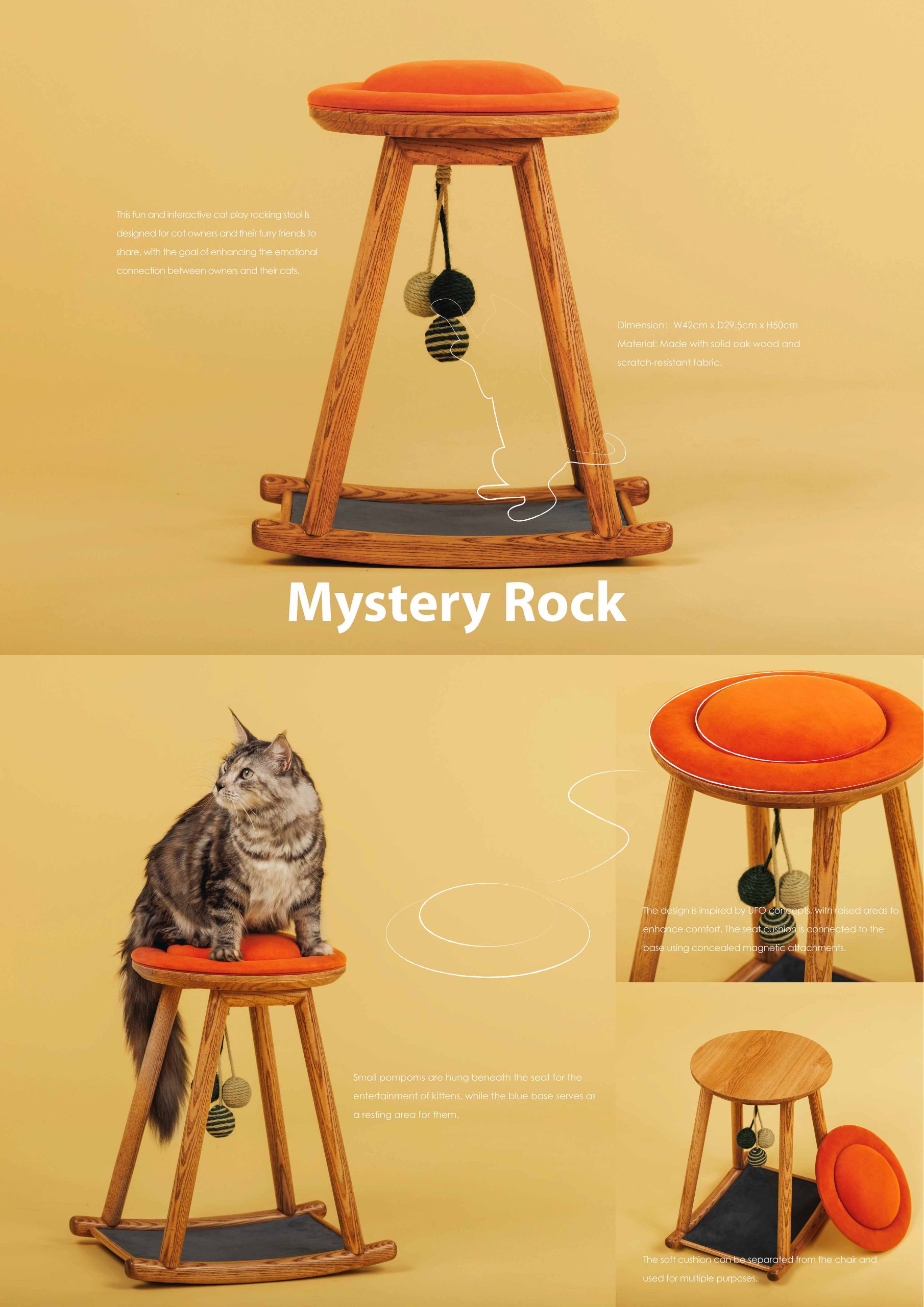 This fun and interactive cat play rocking stool is designed for cat owners and their furry friends to share, with the goal of enhancing the emotional connection between owners and their cats. The thick cushion is inspired by the shape of a UFO and features a raised center with memory foam for added comfort.