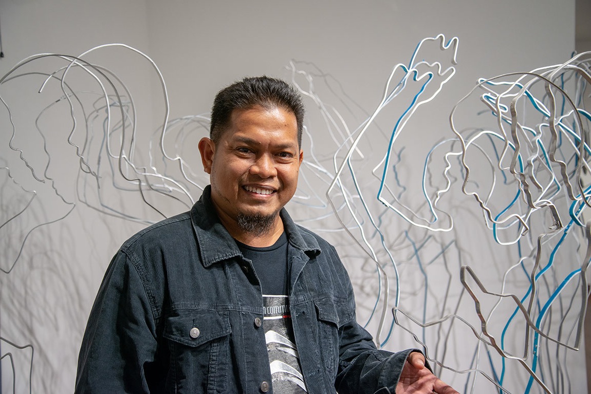 His solo exhibition at the National Art Gallery, entitled “Humans and Gadgets (Manusia dan Gajet)”, depicts the interactions between man and gadget as well as his observations of current phenomenons through painstakingly crafted sculptures.