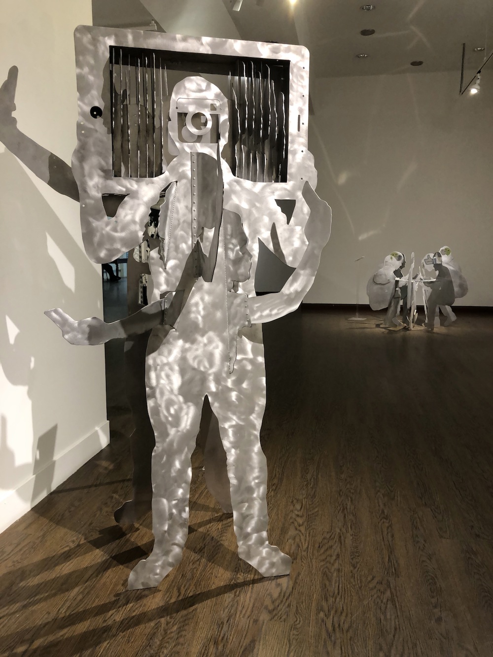 “This is a reflection of current social norms where humans are so attached to their devices that it has become part of our everyday life. Digital devices and technology have allowed us to communicate with many people at the same time, including those around the world. They were sculpted based on my observations of the community around me, the media and the Internet.”